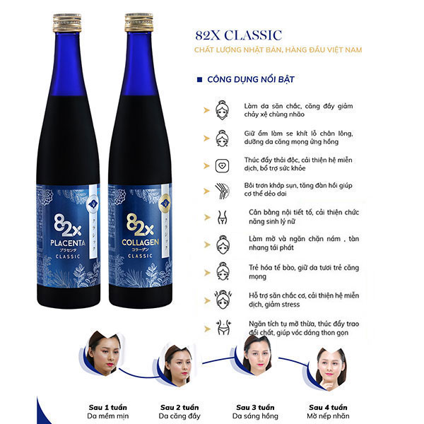 Đến từ thương hiệu 82X Nhật Bản – một thương hiệu nổi tiếng hơn 20 năm qua, trải qua tháng ngày thăng trầm 82X vẫn luôn là niềm tự hào của ngành công nghiệp mỹ phẩm Nhật Bản. Ngày đầu ra mắt, 82X đã tạo nên một cơn sốt mạnh mẽ ở Nhật Bản và các nước Châu Á lân cận. Chứa đựng công thức làm đẹp toàn diện và đột phá, tác động mạnh mẽ đến làn da, xóa bỏ nếp nhăn, mờ thâm. ngăn ngừa lão hóa. Không những thế mà còn cung cấp hàm lượng chất dinh dưỡng bồi bổ tăng cường cho sức khỏe, tăng cường đề kháng và nội tiết tố nữ.